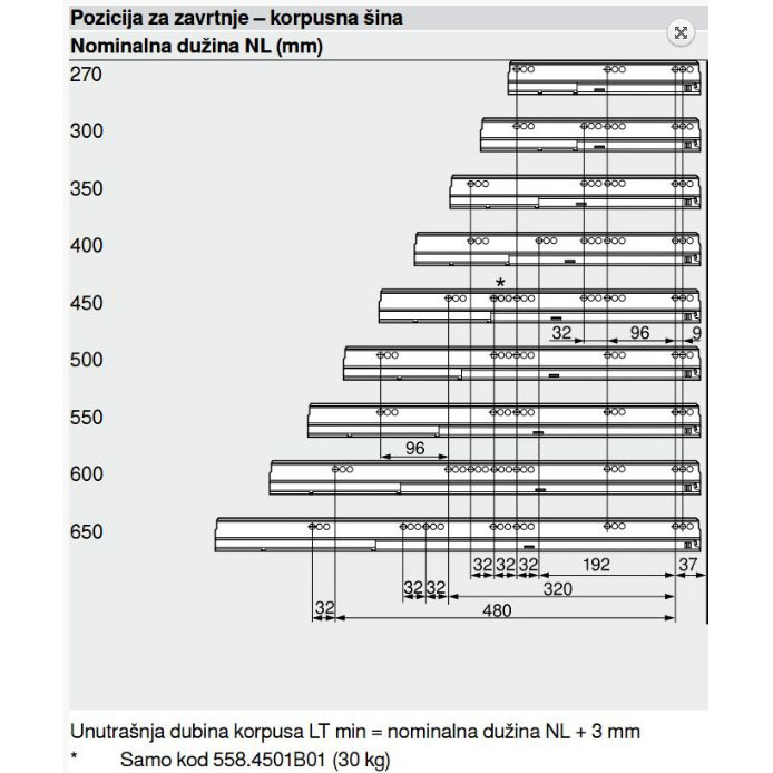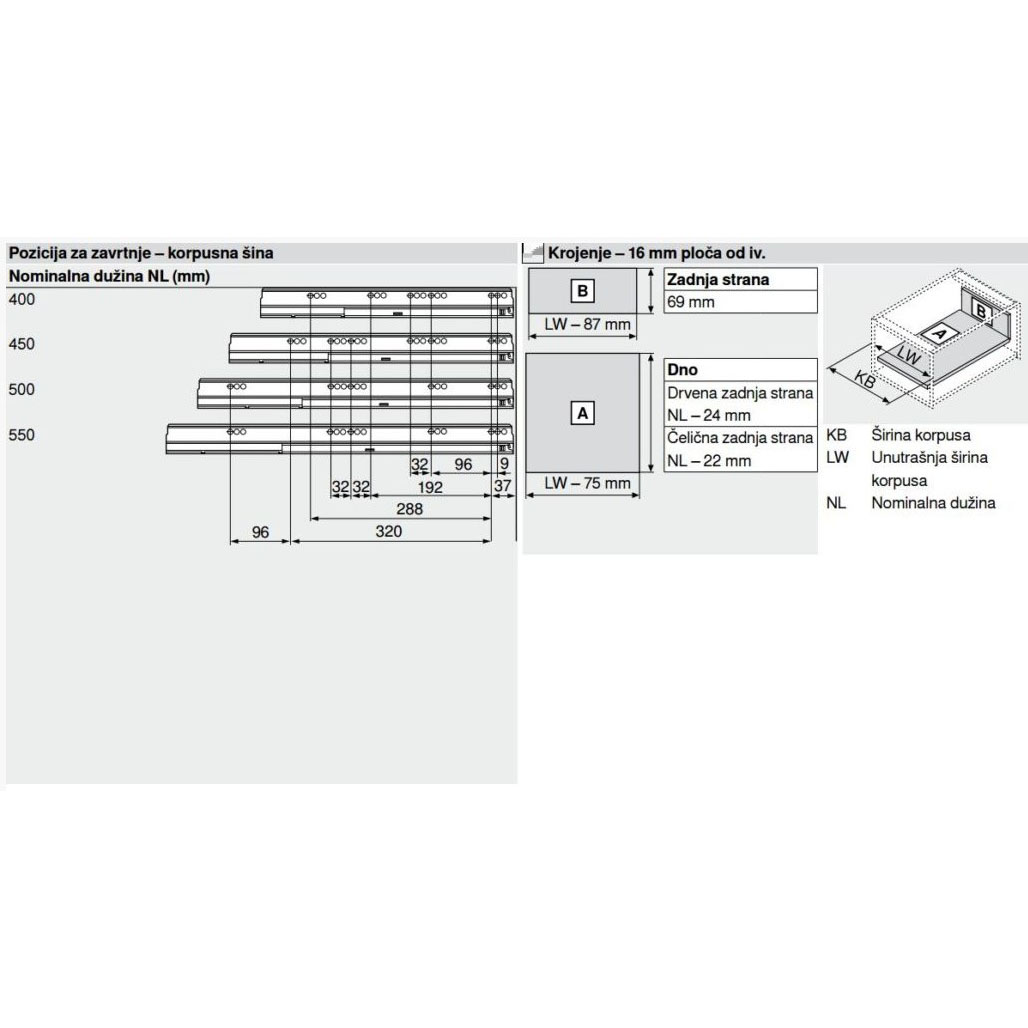 ‣ Tandebox klizač + Blumotionn 30KG 300mm 558.3001B